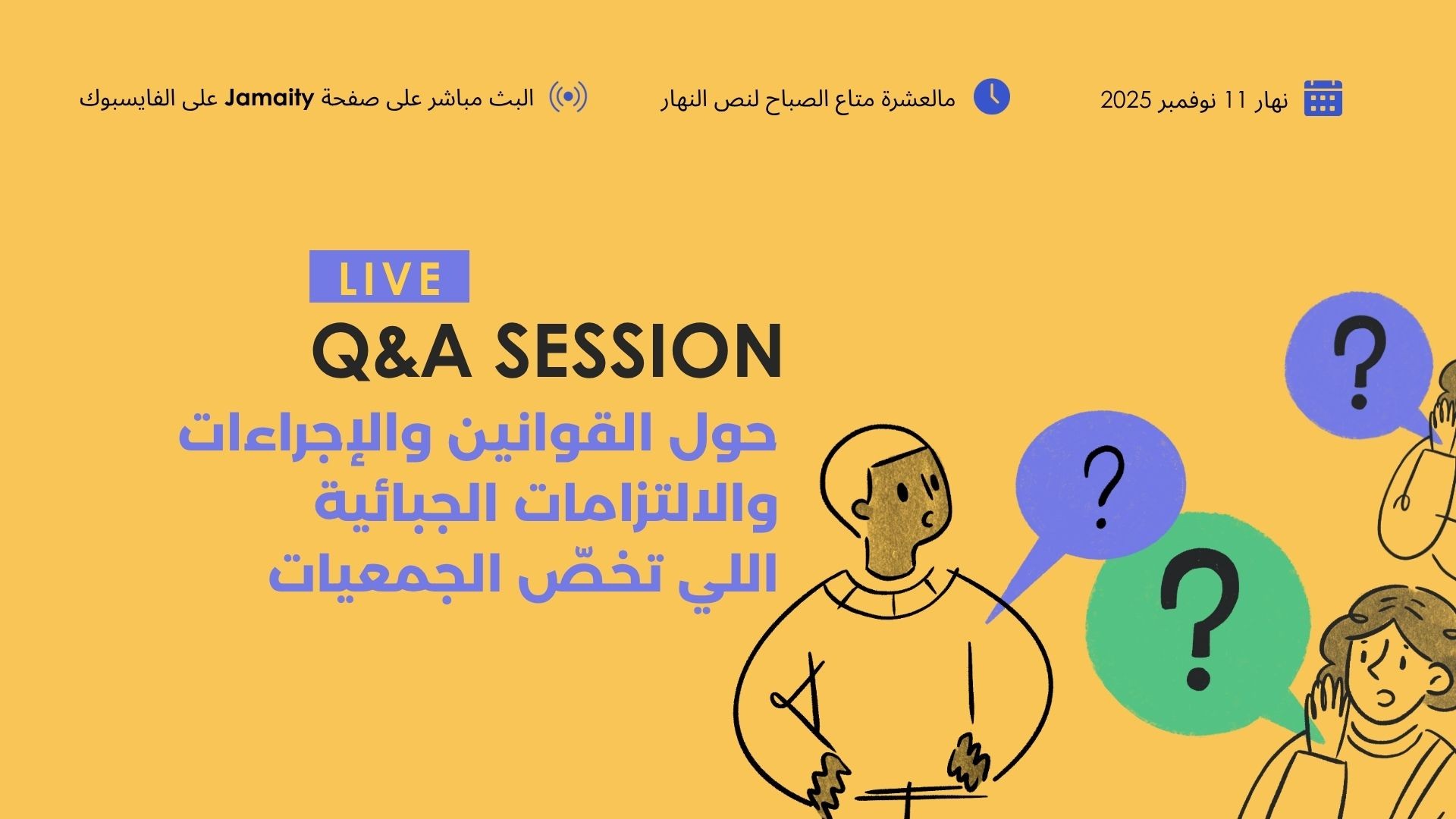 جلسة مباشرة على الفايسبوك، نخصّصوها للنقاش وتبادل الأسئلة حول القوانين، الإجراءات والالتزامات الجبائية اللي تخصّ الجمعيات.