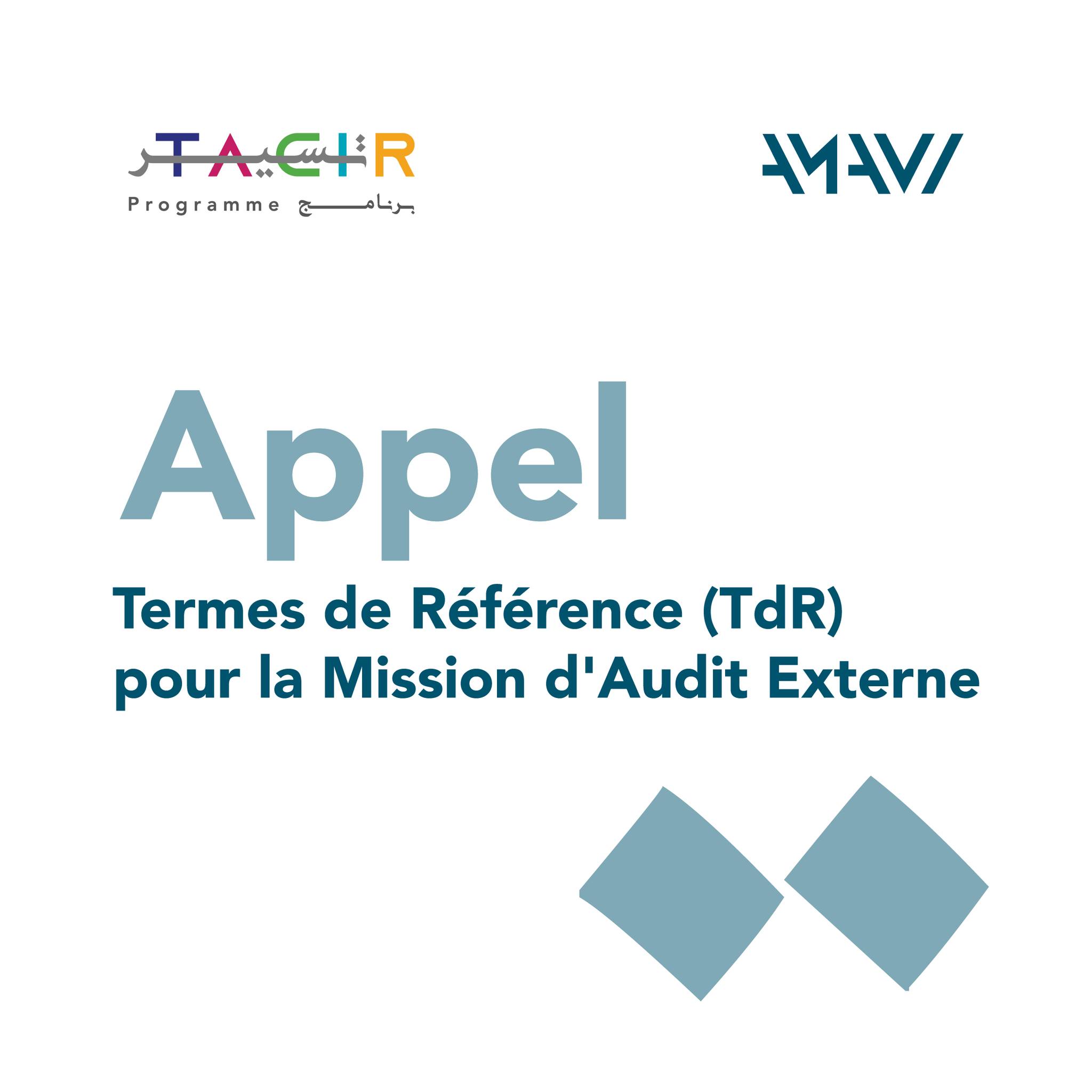 L’objet de ces Termes de référence (TdR) est la sélection d’un auditeur externe afin d’assurer l’audit financier de l’ensemble des dépenses effectuées par AMAVI dans le cadre du programme TACIR-XT (Talent-Arts-Créativité-Inclusion-Recherche), co-financé par la Fondation Suisse DROSOS, Le fonds FEF de l’ambassade de France en Tunisie, le projet Maghroum’in de l’UE, Le Fonds International de la Diversité Culturelle de l’UNESCO, La Fondation Abdelwaheb Ben Ayed & Microcred, l’UIB et ses fondations et la SFBT, et ce pour la période 01/11/2024 – 30/11/2027.