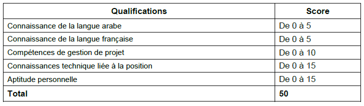 L’évaluation des candidatures admissibles se fera selon un système de points visant à mesurer la qualité des profils, sur la base des CV et des entretiens. Un maximum de 50 points sera attribué aux qualifications et expériences professionnelles, et 50 points à l’entretien.