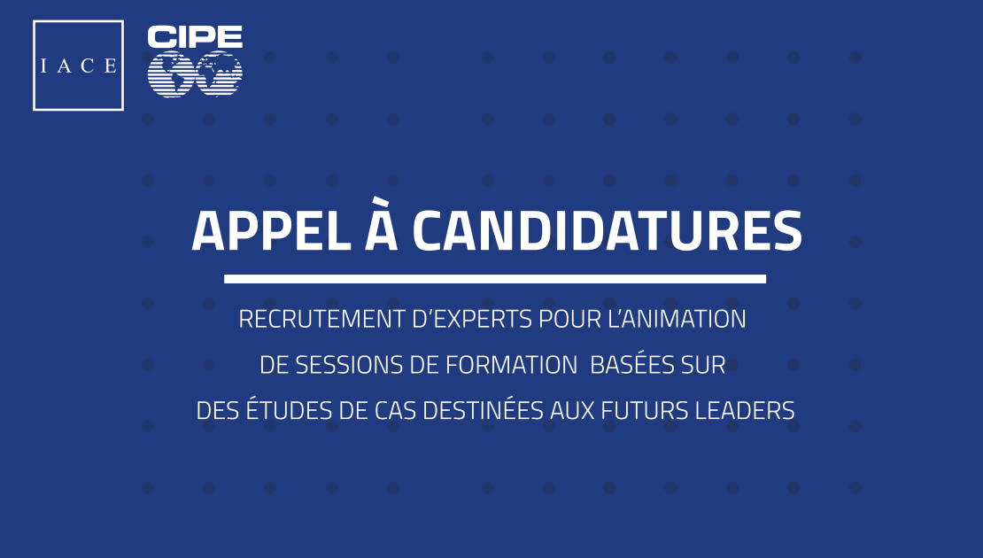 L’IACE recherche des formateurs expérimentés chargés de concevoir et d’animer des sessions du Policy Excellence Program for Young Leaders (PEPYL). Ces sessions s’appuient sur une approche fondée sur les études de cas. La formation vise à renforcer les compétences et connaissances des participants, à travers une approche interactive fondée sur des études de cas, simulations discussions et travaux collaboratifs, tout en intégrant des cours théoriques, analyse pratique et projets appliqués.