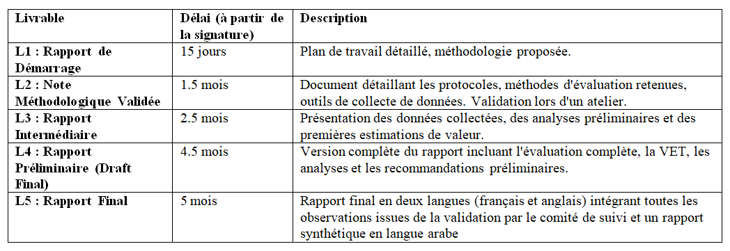 La présente mission a pour objet de réaliser une évaluation économique complète des biens et services rendus par les forêts et les parcours tunisiens et les couts de leur dégradation.